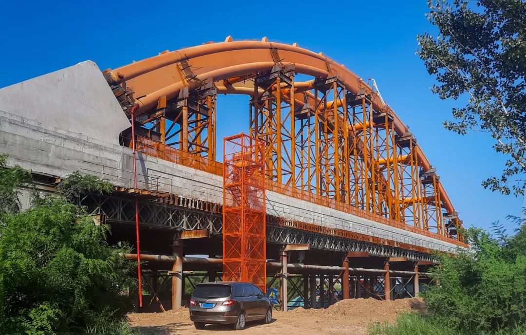 克日,跨捷地碱河特大桥主体钢构顺遂落成。