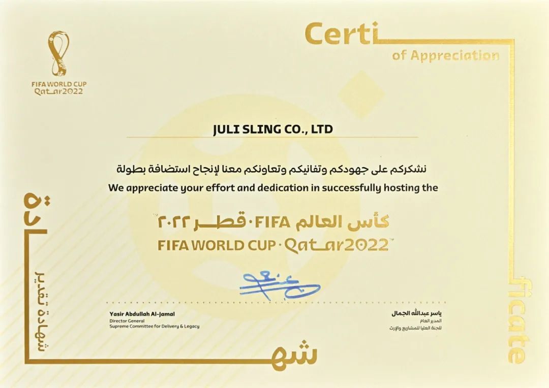 2017年-2022年间,作为中国最大、最专业的索具设想、出产制作商,巨力索具承接了2022年卡塔尔天下杯两座运动场——卢赛尔运动场(LUSAIL STADIUM)和阿图玛玛运动场 (AL THUMAMA STADIUM) 的扶植。