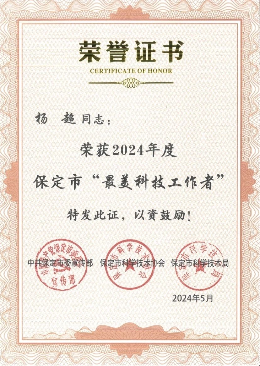 克日,保定市市委宣扬部、市迷信手艺协会、市科技局结合展开了2024年保定市“天下科技任务者日”评选勾当,经构造保举和评审专家委员会综合评选、公示,巨力索具股分无限公司党总支布告、总裁杨超荣获“最美科技任务者”称呼。