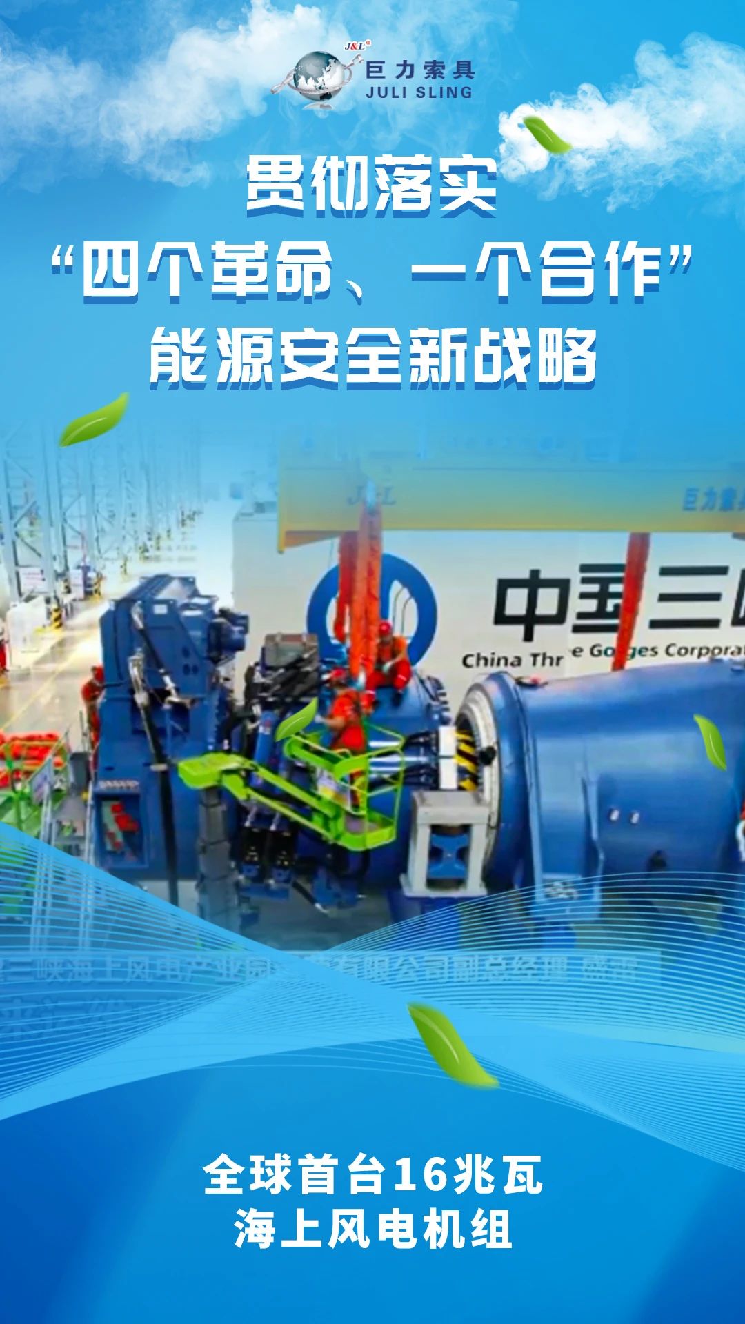 本期,巨力索具官微宣布动力宁静新计谋十周年系列报道之一,看动力宁静新计谋背景下,巨力索具绘就的风电范畴节能降碳协调画卷,感触感染奋进路上结出的累累硕果。