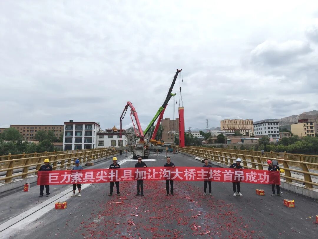 【巨力工程】尖扎县加让沟大桥主塔首吊胜利