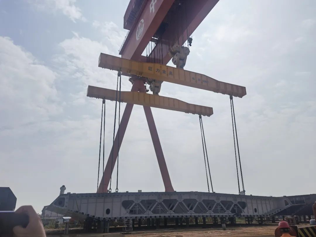 11月19、20日,长133米,宽20米,高4.7米,重1700吨的大型钢箱梁段运至指定地位,巨力索具研发制作的钢箱梁吊具全程保证该名目吊装顺遂实行,标记着深中通道G05标段泄洪区钢箱梁小节段XG9L出海平台在中铁山桥南边设备试运转胜利。这次胜利试运转为深中通道钢箱梁小节段顺遂启运奠基了坚固根本。