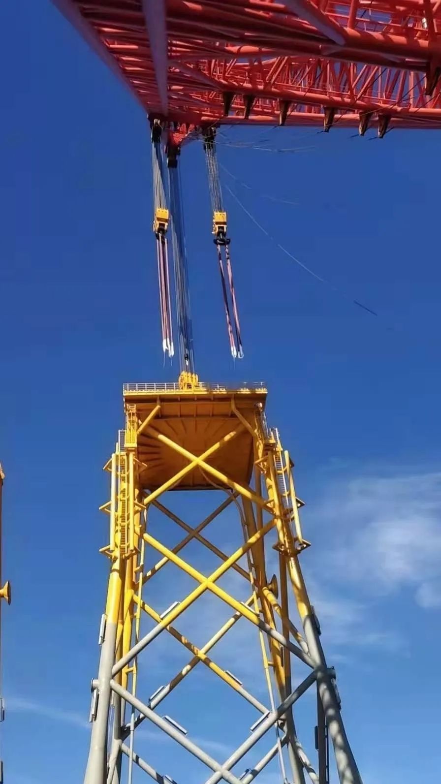 巨力索具为“秦航工2300”号供给起升、变幅、抛锚三大体系在内的全船钢丝绳配套,包含本次超千吨级吊装所用全套索具系列产物。此中为知足“秦航工2300”号亚洲第一吊高的施工需要,船舶工程师设想了超高的2300吨吊机主臂架,使主变幅钢丝绳长度必须知足主臂架设想请求,巨力索具名目团队按照设想计划连系出产工艺停止革新晋升,终究完成单根钢丝绳长度跨越10730米,毛重达215吨胜利托付利用,该钢丝绳胜利投入利用标记着我国钢丝绳财产又向前迈出一步,既彰显了巨力索具制作气力,也为我国在超长超重钢丝绳范畴成长画上浓墨重彩的一笔。