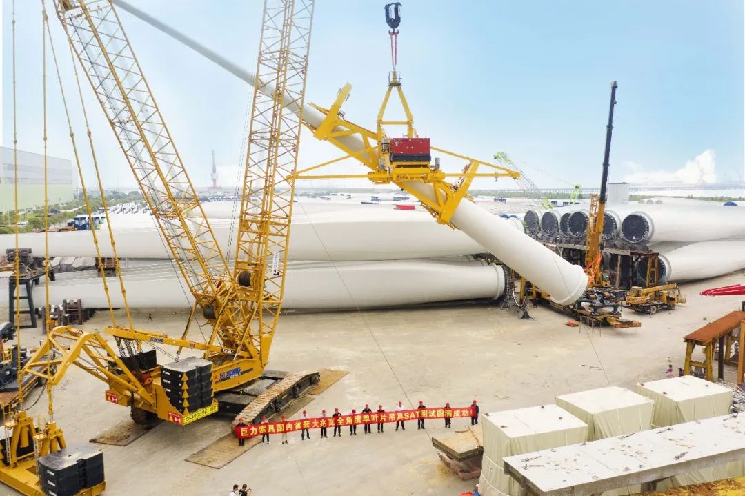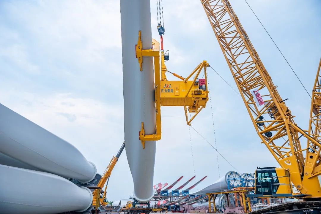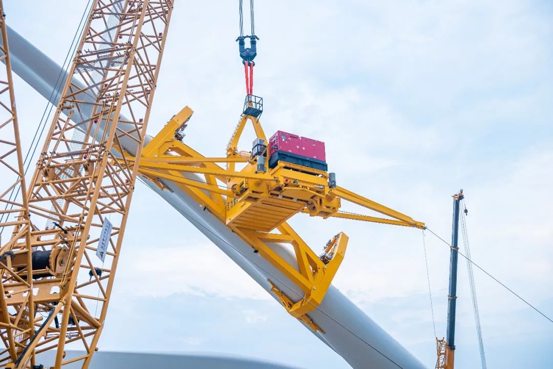 大兆瓦全角度海上单叶片吊具可知足单只叶片最大承重50吨。同时,将原本的吊装窗口均匀风速晋升至15m/s,最大阵风风速可达18m/s,极大拓宽了风机吊装窗口期,冲破了海上吊装功课风速边境限定,是又一款海上风电单叶片吊装“利器”。