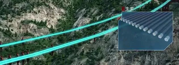 全桥两组主索构成一套吊装体系,每组主索为12根直径60毫米的钢芯钢丝绳并有响应的两根直径28毫米纤维芯起重索,两根直径32毫米纤维芯牵引绳等与之配套,整套体系共四个吊钩,以便于停止拱类姿势调剂。