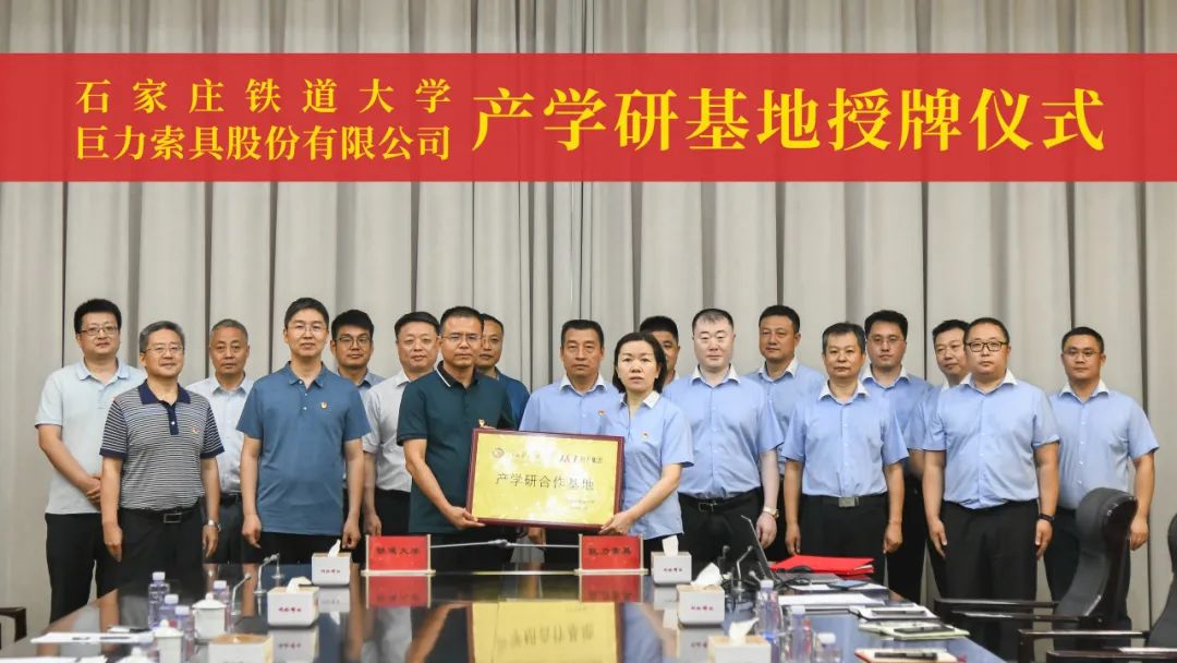 2023年7月4日,石家庄铁道大学土木匠程学院韩东海布告一行10人到访巨力索具,两边就产学研协作和党建任务停止交换漫谈,进行了计谋框架和谈具名典礼暨石家庄铁道大学产学研基地授牌典礼。巨力索具常务副总裁李彦英、团体党委副布告李天明、副总裁亢永刚欢迎并列席典礼。