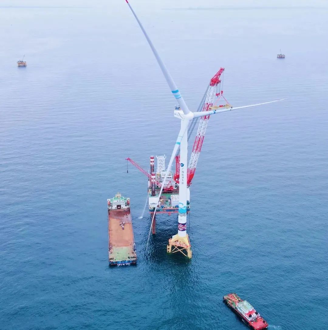 克日,广西首个海上风电名目——广西投资团体防城港海上风电树模名目A场址工程首台风机电组完成吊装,为2023年底首批机组并网发电打下根本。巨力索具所研发50吨折叠式海上单叶片吊具顺遂完成首台风机的叶片装置。