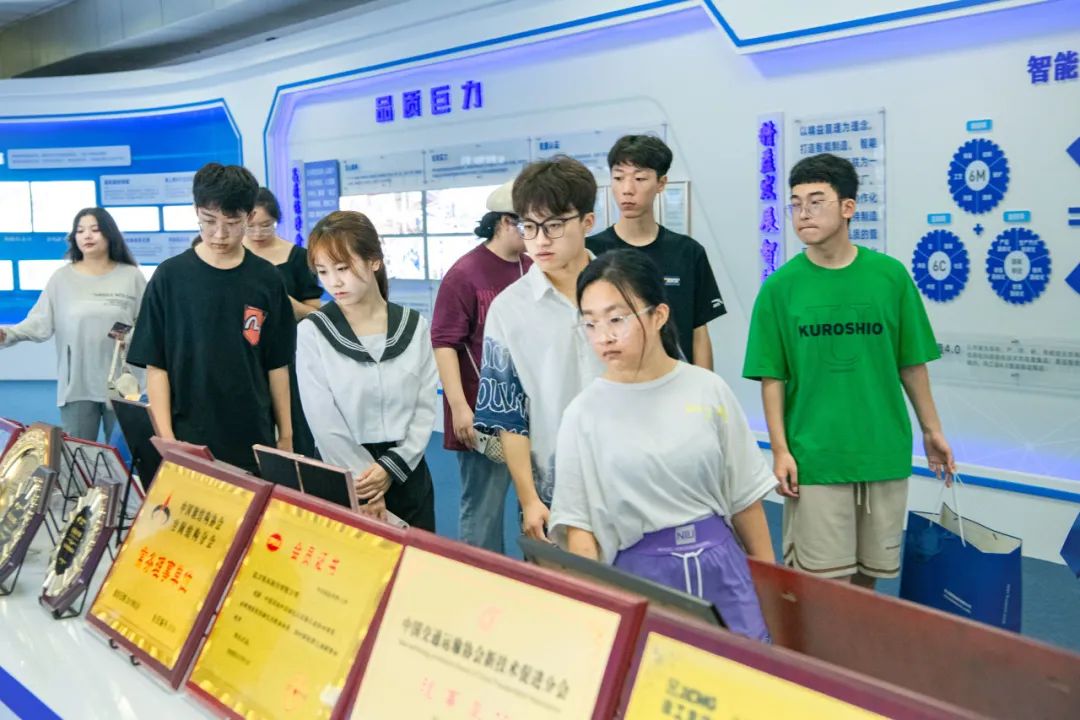 走进团体展厅,一场逾越时空的交换拉开帷幕。同窗们跟从讲授职员的步调,领会了巨力团体38年的成长变更、财产散布、企业文明等等。38年的汗青鲜明摆在眼前,同窗们既别致又冲动,感慨于大国重器“智”造的风度,并为本身的怙恃到场此中感应自豪。